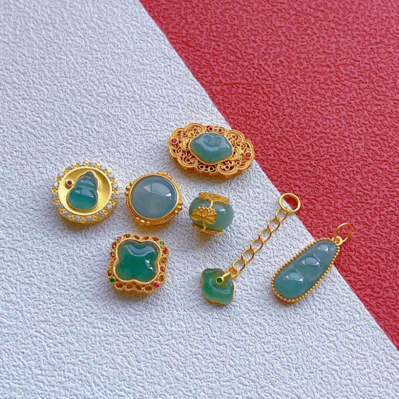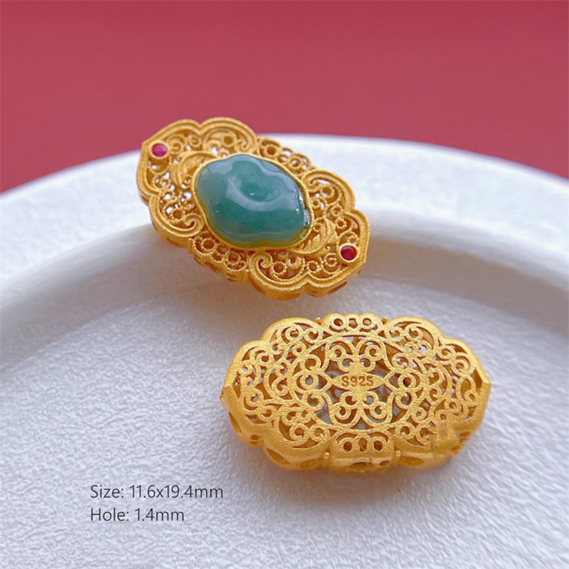 925 Silver Gilded Base Jade Stone Spacers Partition