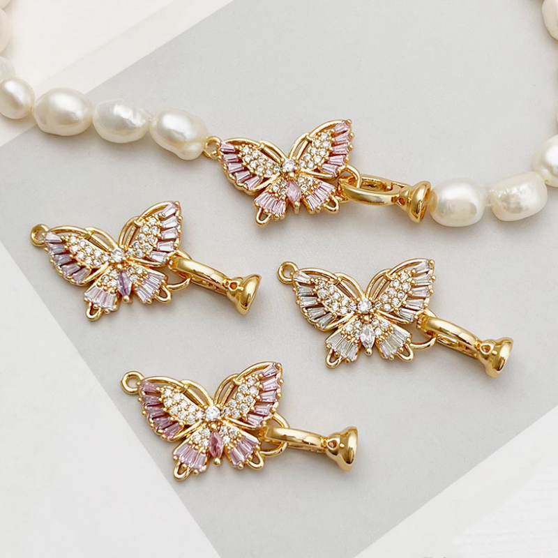 Brass High Quality Zircon Vivid Diamond Butterfly Twister Clasp