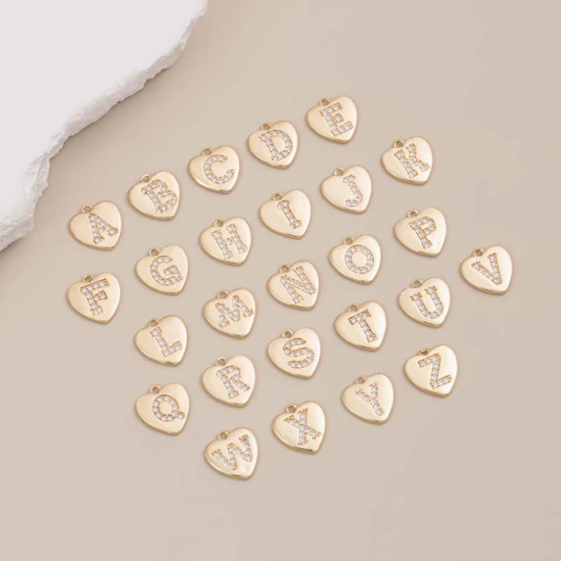 Brass Zircon Letters Words Pendant Piece 14K Plated-PMXS-01